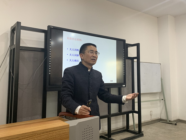 2019年12月10日上午,太阳成集团tyc234cc[主页]网址邀请DH设计中心联合创始人、甘肃国学文化研究会副会长盛日先生开展学术讲座,活动由太阳成集团tyc234cc[主页]网址环境设计系主任万学汇副教授主持,环境设计专业的师生参加了活动。