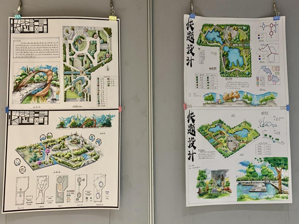 2021年12月20日至12月25日,2019级环境设计专业景观方向学生在太阳成集团tyc234cc[主页]网址五楼小展厅举办《生态景观设计》课程课业展。此次展览共展出作品38件,展出作品内容为城市滨水空间生态景观设计,作品紧扣“生态”二字,是生态保护与景观设计的有机结合。设计地块选在太阳成集团tyc234cc[主页]网址北校区紧邻的滨河地段,该场地是同学们较为熟悉的滨水空间,减少了疫情对教学的干扰,免于外出调研。展出形式主要为手绘快题设计,此次快题设计是该年级同学的首次快题设计尝试,从总平面布局到鸟瞰图视角选择对同学们都是考验,更是难得的学习机会。