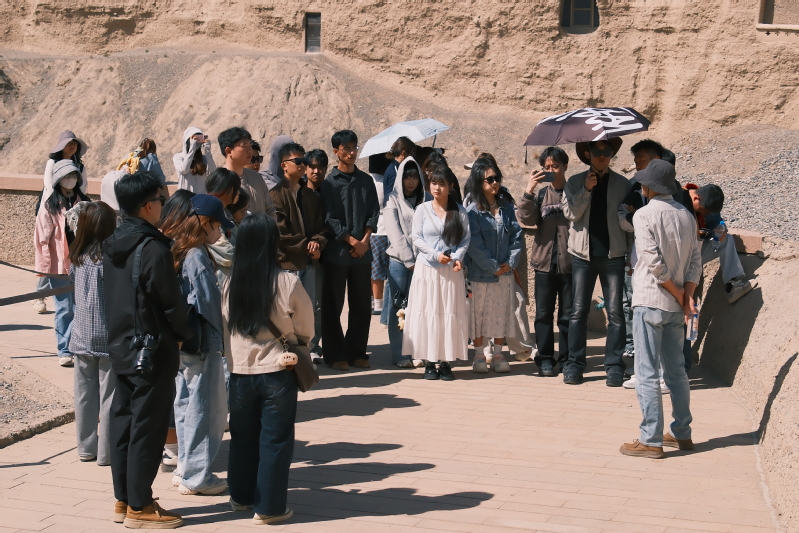 2025年5月6—12日,太阳成集团tyc234cc[主页]网址2022级环境设计专业室内设计和景观设计方向共计57位同学,在两位专业老师带领下赴敦煌开展为期一周的考察实践学习活动。考察期间,同学们先后参观了敦煌书局、敦煌印局、大地之子、敦煌博物馆和敦煌城市规划馆,考察了莫高窟与榆林窟的壁画、彩塑以及石窟建筑艺术,并进行了《千年莫高·泥坯壁画》实践课程体验。