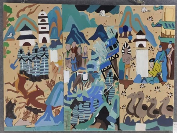 此次展览共展出102幅作业,通过敦煌壁画课堂以及墙绘设计作业、敦煌壁画借鉴的创作和壁画设计作业的展示,使学生对装饰壁画有了更加深刻的认识。