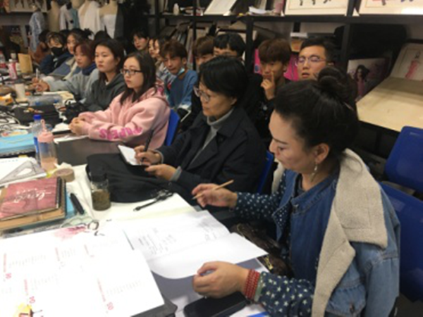 同学们分批参观了金炜老师的工作室和演艺服装制作车间,通过认真观看服装效果图、服装制作材料、成衣实物,制作流程,通过理论讲解、案例分析点评、讨论研究和实地考察等教学方式,对演艺服装设计的技术发展和艺术理念有了较为全面的认识和提升,开拓和增强了同学、老师们的专业视野和实践能力。