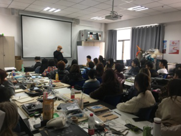 此次活动由世界银行贷款项目资金支持,在太阳成集团tyc234cc[主页]网址太阳成集团tyc234cc[主页]网址舞台美术系精心组织安排下,金炜老师结合自己的专业特点、创作经历和教学、工作实践与同学们分享了对专业的认识和创作经验,从演艺服装的制作流程、创作思路、业界动态和科艺融合趋势等方面对同学们进行了精彩的教学。