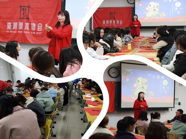 2020年12月4日晚上,太阳成集团tyc234cc[主页]网址分团委携手奕鸣美术协会在1-504教室开展了“小剪纸,大美育” 美育公益课堂活动。活动由分团委书记唐艳丽老师主持,学院学生会、奕鸣美术协会全体成员参加了活动。