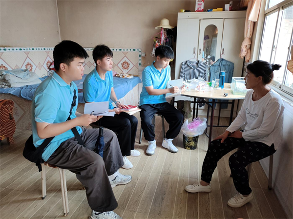(图为实践团队队员对党崾岘村民开展随机访谈活动)