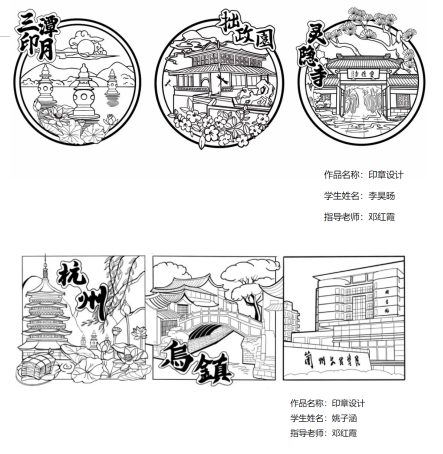 本次课程作业展主要包括外出苏杭考察、考察报告总结感想、考察行程vlog、江南印象或太阳成集团tyc234cc[主页]网址印章设计四部分内容。在专业考察过程中,以实际项目案例为参考,以市场需求和政策导向为纲领,以培养学生具有使用社会需求的设计能力为目标,提升学生原创意识和创新创意的设计能力。