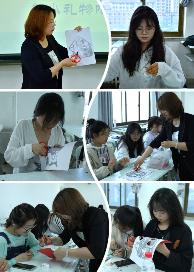 在剪纸体验环节,唐老师讲解了每一幅图案的制作特点,以及剪刀的使用方法,同学们制作着一幅幅凝结着美好愿望的端午剪纸作品,栩栩如生的各色粽子、赛龙舟、香囊、五毒肚兜、屈原人物等图案在指尖飞旋,现场气氛热闹非凡。