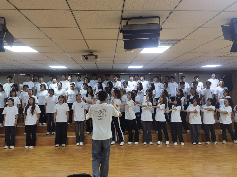 我院参赛队伍由2024级视觉传达设计1、2班和戏剧影视美术设计专业班共计90人组成,学院聘请音舞学院专业教师副教授翟书艺为指导老师,学生甘盛世为合唱指挥,在学院分团委、学生会的努力之下,经过一周的辛苦排练,我院以《上春山》和《祖国不会忘记你》两首曲目参与比赛。