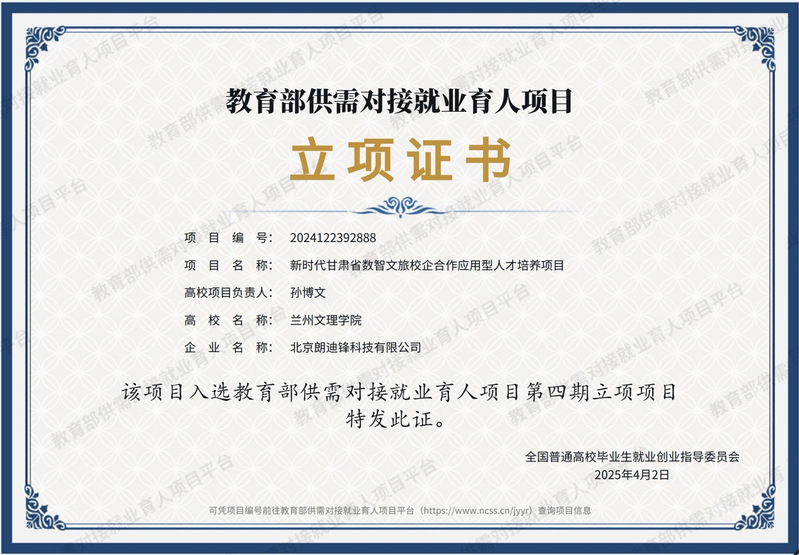 近日,教育部供需对接就业育人项目第四期立项项目公布,我院“新时代甘肃省数智文旅校企合作应用型人才培养项目”入选。