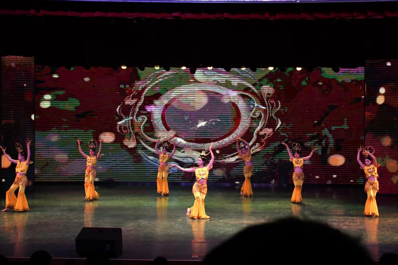 我院选送的敦煌舞作品《沁莲》以敦煌壁画为灵感源泉,由齐文、秦一婷、赵宇洁、牛一婷、任蕊、伍小星、杨丽菲这7名舞者倾情演绎。舞蹈巧妙融合敦煌壁画中独特的“S”形曲线与三道弯姿态,舞姿灵动且富有韵律,随着音乐的起伏,舞者们时而轻盈飘逸,如同仙子下凡;时而矫健有力,展现出敦煌壁画中人物的坚韧与毅力。整个表演过程中,观众们被深深吸引,掌声雷动,赞叹不已。