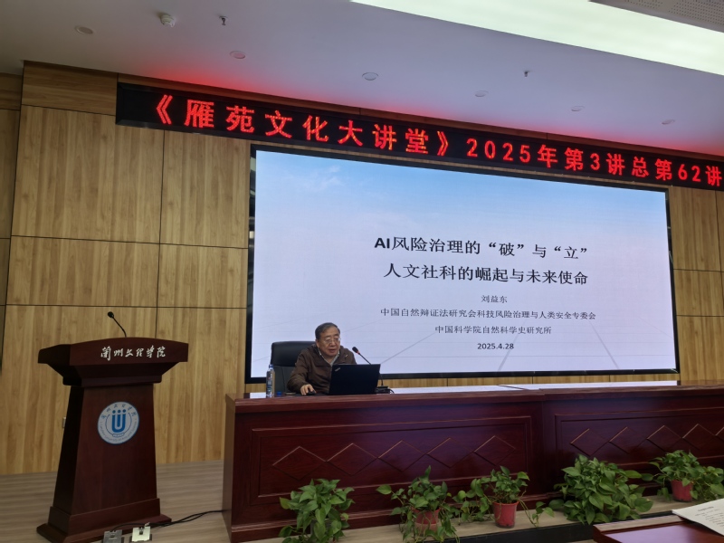 4月28日下午,中国科学院自然科学史研究所二级研究员,博士生导师刘益东教授应邀来我校做《“AI 风险”治理的“破”与“立“—人文社科的崛起与未来使命》学术报告,报告由党委委员、副校长张焱主持。