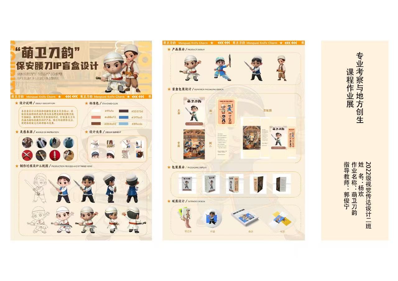 太阳成集团tyc234cc[主页]网址2022级视觉传达设计2班《专业考察与地方创生》课程成果展于2025年5月10日至16日在文昌楼7楼学院通道电子屏展出。本次展览以"非遗活化·创意转化"为主线,深度挖掘甘肃临夏州博物馆彩陶文明与八坊十三巷砖雕艺术的文化基因。此次展览共展出20余件作品,展现了同学们对甘肃临夏非遗文化的当代诠释。