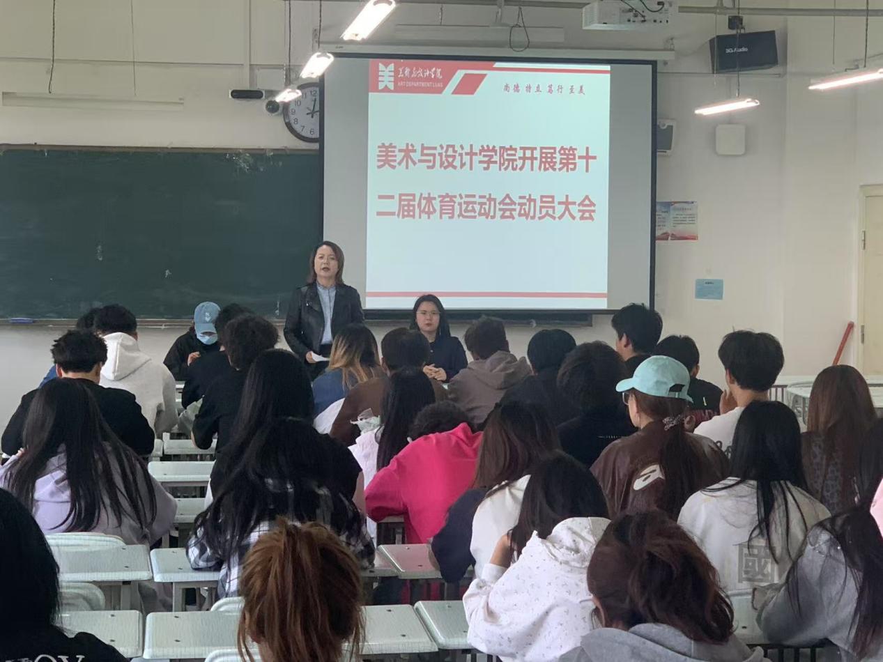 唐老师详细介绍了运动会的比赛项目、流程、赛制规则、奖励办法及注意事项。强调运动员要严格遵守纪律,服从管理,公平竞争,不冒名顶替,在有限的时间内刻苦训练,提高技能,比赛场上敢于拼搏、不轻易言败,充分展现美院学子积极向上的精神风貌,争取赛出成绩、赛出风格。负责后勤的同学要做好服务工作,全力保障运动员安全,同时提醒运动员注意比赛场次和时间,提前候场、不迟到,注意赛前热身,比赛过程中尊重裁判,听从指挥,保持良好心态,文明参赛。