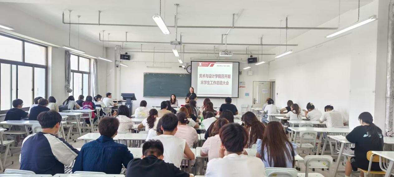 会上,唐老师对我院本学期学生工作进行了全面的总结。本学期团学办从日常工作着手,以班级团支部为抓手,在青年学生中开展理论学习和宣讲活动,提高全院学生的理论素养。紧抓学风建设,结合学院分团委“画”中有“话”的学院特色,开展“以美慧心 铸魂育人”美育特色品牌活动,彰显学院塑造学生健全人格和美好心灵的育人特色;有效开展丰富多彩的校园文化活动,展现美院学子积极向上的精神风貌,激发同学们爱校爱美院的情怀;强化学院学生管理和服务工作,塑造和谐奋进美院的师生风貌;注重学术交流,深化产教融合,推进实践教学等组织大小型活动20次,且活动成果显著。同时完成了今年的五四评优、团员和党员发展推优、2025届毕业生团关系的转接、西部计划的推荐以及校级社会实践团队的组织申报等工作。