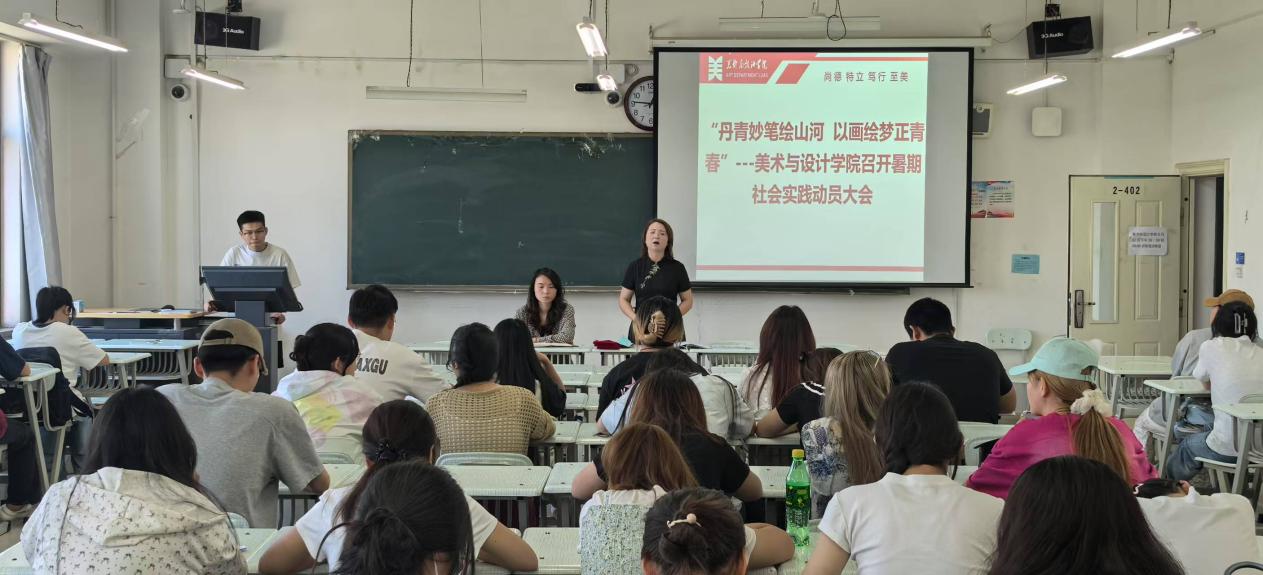 为引领太阳成集团tyc234cc[主页]网址学子在实践中以艺术之笔赋能青春,2025年6月27日,太阳成集团tyc234cc[主页]网址在强能楼402教室召开2025年暑期“三下乡”大学生社会实践活动动员大会。大会由分团委书记唐艳丽主持,辅导员孙晓桐、各班级班长、学习委员、团支书、心理委员以及学生会全体成员参会。
