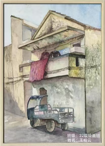 (22级绘画班王柏云作品——《路口的一栋人家》)