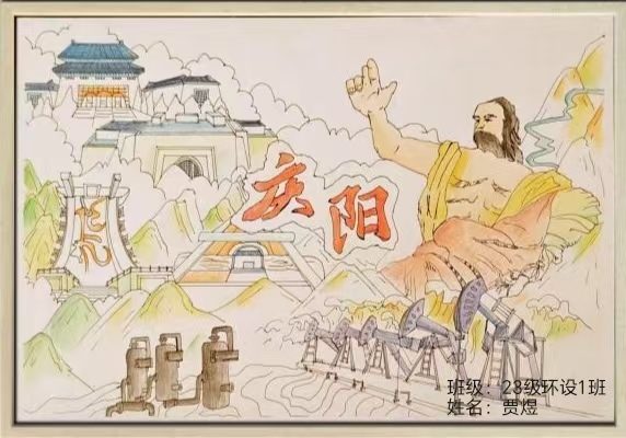 (23级环境设计1班贾煜作品——《庆阳风貌》)