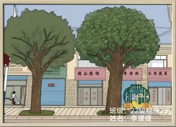 (22级视觉传达2班李媛媛作品——《乡镇街道一角》)
