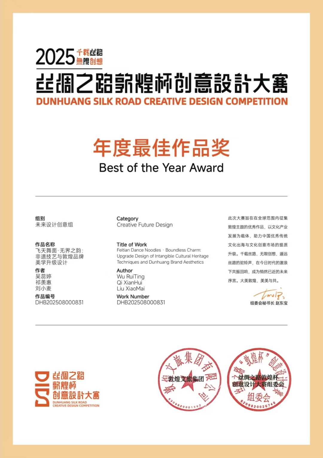 我院师生作品荣获2025丝绸之路“敦煌杯”创意设计大赛银奖及年度最佳作品奖